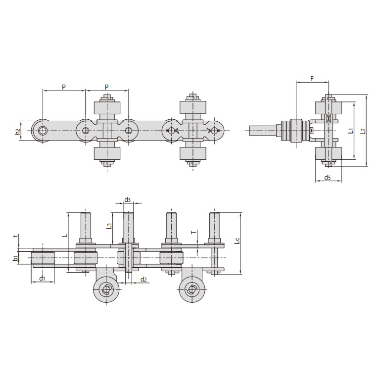 - 체인 플레이트, 핀, 관절 블록 크로스 조인트 및 롤러 어셈블리(롤러, 베어링, 핀)로 구성되어 유연성, 내구성 및 고효율을 제공합니다.
