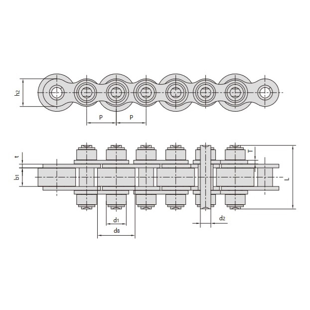 대형 롤러가 장착된 컨베이어 체인 기술 표