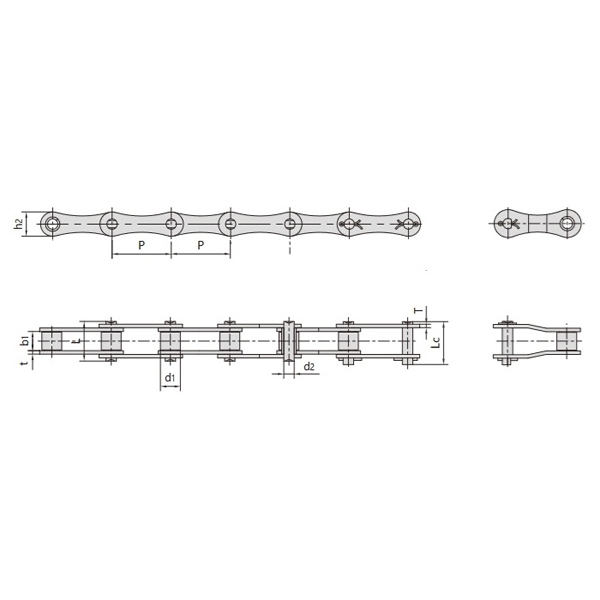 더블 피치 구동 체인소형 동력 전달, 저속, 긴 전달 중심 거리 적용에 이상적입니다. 더 큰 피치로 인해 장거리에서도 효율적인 작동을 가능하게 하여 특정 산업 현장에서 선호되는 선택입니다.