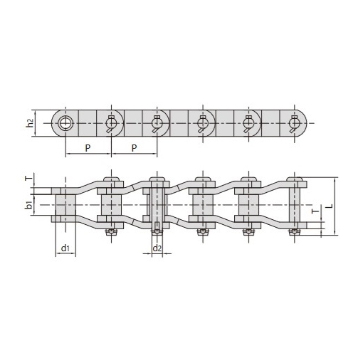 - 굽은 플레이트 링크:곡선형 설계로 인해 체인은 열악한 작업 조건에서도 우수한 유연성을 유지하면서 큰 충격 하중을 흡수할 수 있습니다.