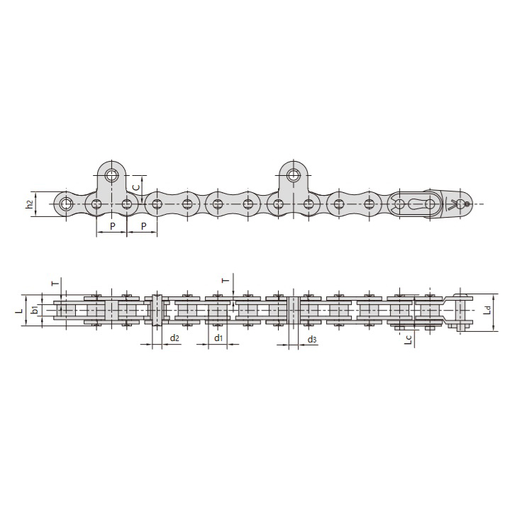 벼 수확기 체인에는 핑거 부착 리프팅 체인 415 시리즈와 33mm, 35mm 피치의 날카로운 이빨 피드 체인 및 기타 시리즈가 포함됩니다.