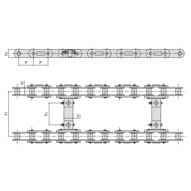 - 외부 체인 플레이트 세트는 내부 체인 유닛을 연결하여 강도와 안정성을 향상시킵니다.